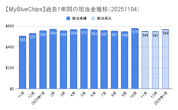 同配当月グループ次回(2026年1月)は、568ドルの配当金が見込めています。