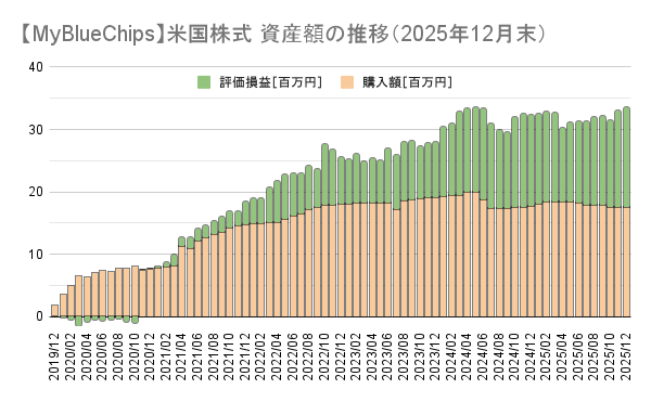 2025年12月末時点、1,760万円分の株式を購入・保有しています。