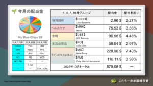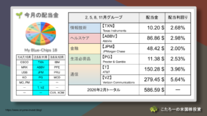 投資信託と並行して、米国の連続増配株への高配当投資も取り組んでいます。